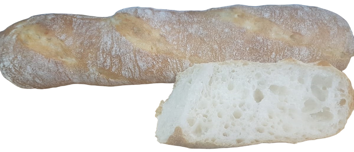 Продолговатой формы с тремя косыми надрезами, свойственный данному виду изделия, не расплывчатый. Допускаются небольшие притиски. Мякиш равномерно пропеченный, эластичный, крупнопористый с тонкостенной ярко выраженной структурой. Без постороннего привкуса и запаха.