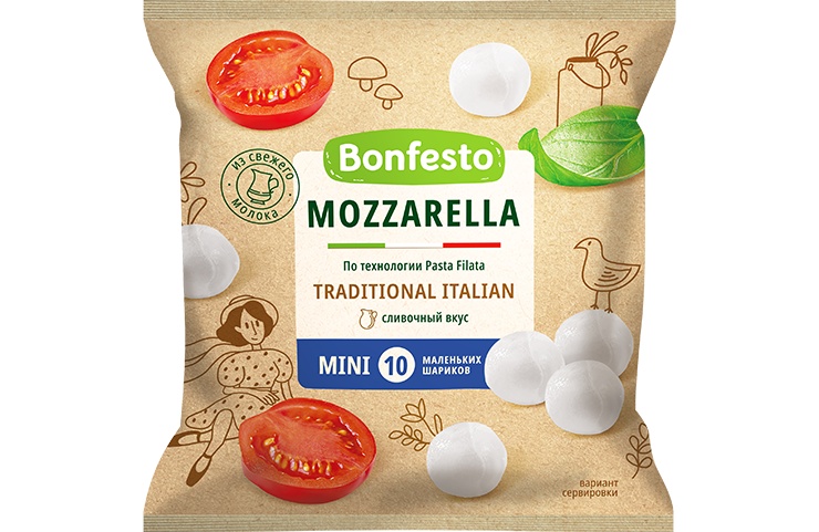 Сыр Моцарелла BONFESTO мягкий 10 шариков 45% 80г