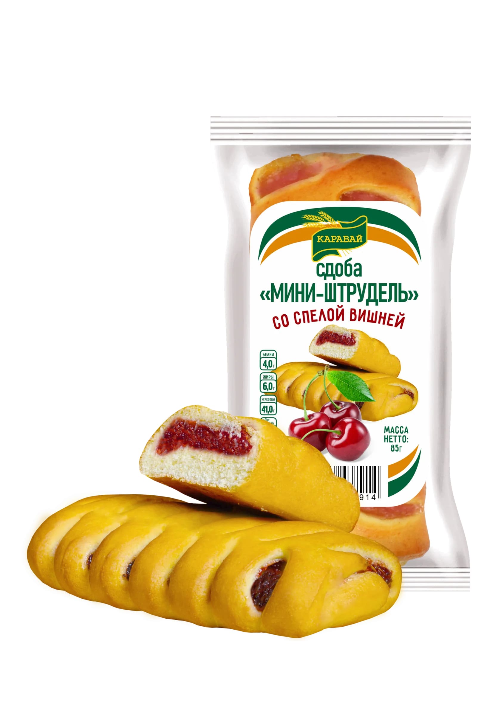 Сдоба КАРАВАЙ Мини-штрудель с вишней 85г