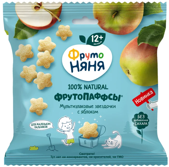 Фрутопаффсы ФРУТОНЯНЯ мультизлаковые звездочки с яблоком 21г