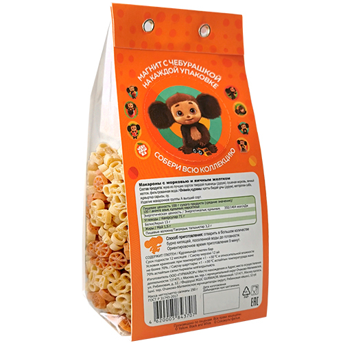 Макарошки Чебурашка с морковью и яичным желтком 250г