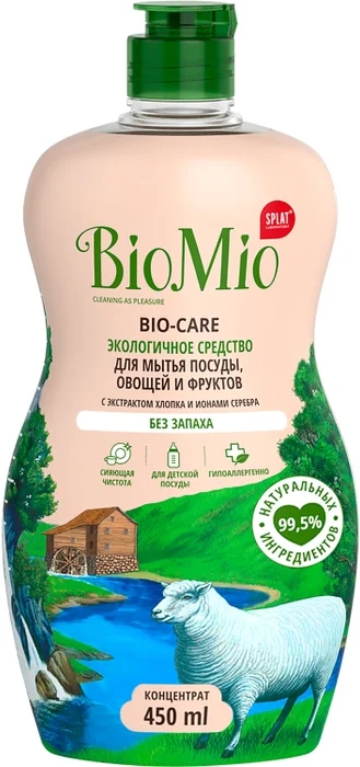 Экологичное и многофункциональное жидкое средство BIOMIO Bio-Care идеально подходит для мытья посуды.