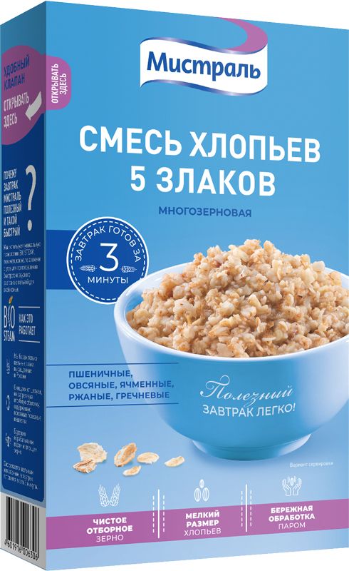 Хлопья МИСТРАЛЬ 5 злаков б/п 400 г