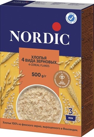 Хлопья NORDIC 4-х зерновые 500г