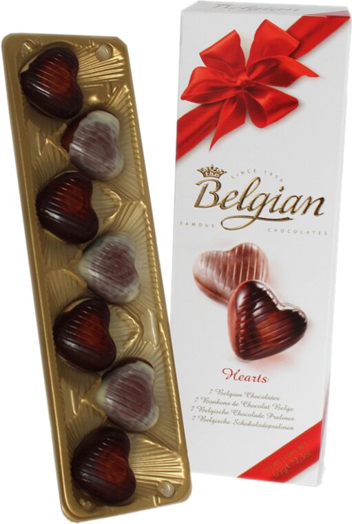 The Belgian, Chocolate Hearts — замечательные конфеты из белого, молочного и темного шоколада, выполненные в форме сердечек. Особую прелесть лакомству придает напоминающая мусс, нежная, умеренно сладкая шоколадно-сливочная начинка со вкусом лесного ореха. Конфеты, имеющие романтическую форму и элегантное оформление, станут чудесным подарком для любимого человека.