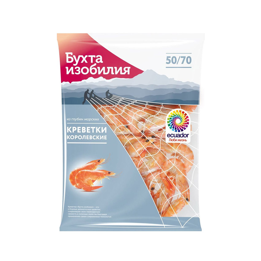 Креветки БУХТА ИЗОБИЛИЯ королевские неразд. 50/70 400г