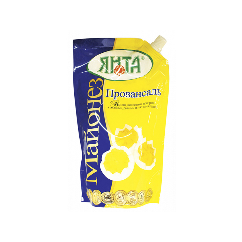 Масло растительное рафинированное дезодорированное, вода, сахар, яичный желток, соль поваренная пищевая, регулятор кислотности (уксусная кислота), консервант (сорбат калия), стабилизаторы (ксантановая камедь, гуаровая камедь), ароматизатор «Горчица», идентичный натуральному, краситель натуральный (бета-каротин). При производстве майонеза используются растительные масла: подсолнечное, или соевое, или рапсовое рафинированные дезодорированные.