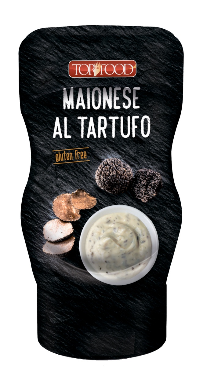 Масло подсолнечное 68%, яйца пастеризованные 9%, вода, шампиньоны (Agaricus Bisporus), уксус винный, соль, сахар, крахмал кукурузный модифицированный, лимонный сок, сухари без глютена (кукурузный крахмал, мука рисовая, крахмал тапиока, дрожжи пивные, масло оливковое первого холодного отжима (экстра верджин), масло подсолнечное, сахар, загуститель: Е412, Е464, соль, эмульгатор: Е471, Е472, овощные волокна, корректор кислотности: Е262, ароматизаторы натуральные, дрожжевой экстракт), горчица, корректор кислотности: Е262, консервант: Е202, трюфель черный летний 0,07% (Tuber Aestivum Vitt), петрушка, чеснок, перец, ароматизатор. Может содержать остатки рыбы, сои, молока, фруктовой кожуры, сельдерея, кунжута. Не содержит глютен.;