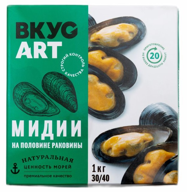 Мидии 1/2 ракушки с/м ВкусАрт 1кг