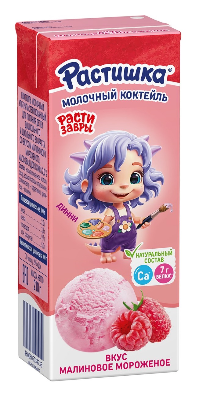Коктейль молочный Растишка ультрапаст Малиновое мороженое 2% 210г