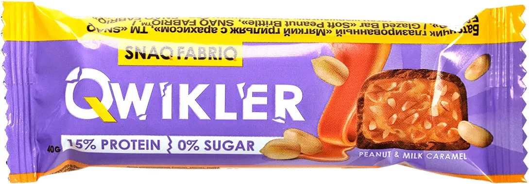 Батончик глазированный "QWIKLER" Мягкий грильяж с арахисом 40г