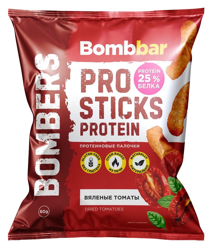 Кукурузные палочки BOMBBAR протеиновые Вяленые томаты 60г
