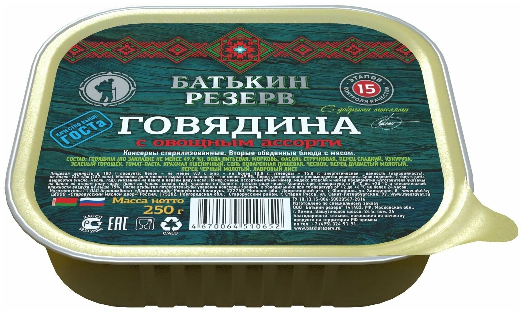 Говядина тушеная Батькин резерв с овощами 250г ж/б
