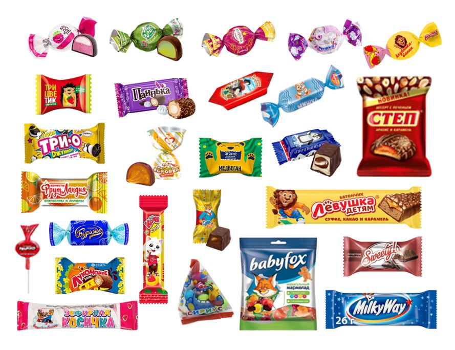 Конфеты СЛАДУНИЦА Рожки-Единорожки 3 шт, Шоколад ЯШКИНО молочный Babyfox с молочной начинкой 47г 1 шт, Батончик ЯШКИНО Чио Рио конф.в мяг.карам.глаз.молоч-шок. 30г 1 шт, Конфеты ЯРЧЕ! С арахисом 1 шт, Конфеты Чио Рио 1 шт, Мармелад ЯШКИНО Бегемотик Бонди 30г 1 шт, Конфеты КОНТИ Timi Toffee микс 1 шт, Конфеты КОНТИ Бонжур мягкая карамель кокос с миндалем 1 шт, Конфеты КОНТИ Boombol со вкусом BobbleGum 1 шт, Конфеты КОНТИ Тими Сливки 2 шт, Конфеты КОНТИ AMOUR 1 шт, Карамель на светящейся палочке ЛУЧИК Картошка Фри 1 шт, Конфеты Марми Три кота фигурные 1 шт, Шоколад МАРМИ Союзмультфильм 40г 1 шт, Конфеты SNICKERS Минис 1 шт, Конфеты MARS Минис Балк 1 шт, Конфеты NESTLE Несквик мини 2 шт, Конфеты Кит Кат с хрустящей вафлей 2 шт, Шоколад NESQUIK 28г 1 шт, Конфеты РОТ ФРОНТ Васильки 1 шт, Конфеты РОТ ФРОНТ Ромашка 1 шт, Конфеты КРАСНЫЙ ОКТЯБРЬ Ласточка г.Москва 1 шт, Конфеты КРАСНЫЙ ОКТЯБРЬ Мишка косолапый г.Москва 1 шт, Конфеты СЛАДУНИЦА Самый умный 1 шт,;