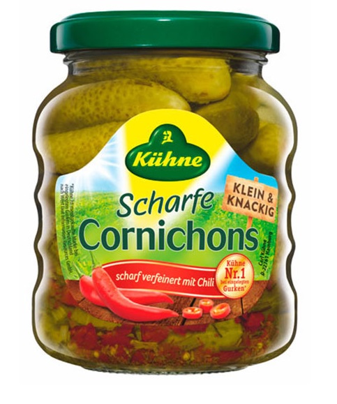 Корнишоны KUHNE острые 180г с/б