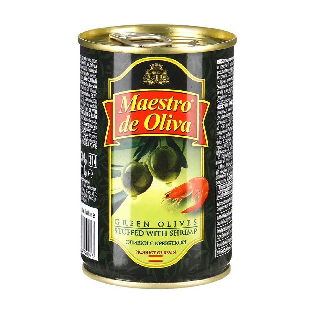 Оливки MAESTRO De OLIVA с креветками 300г ж/б