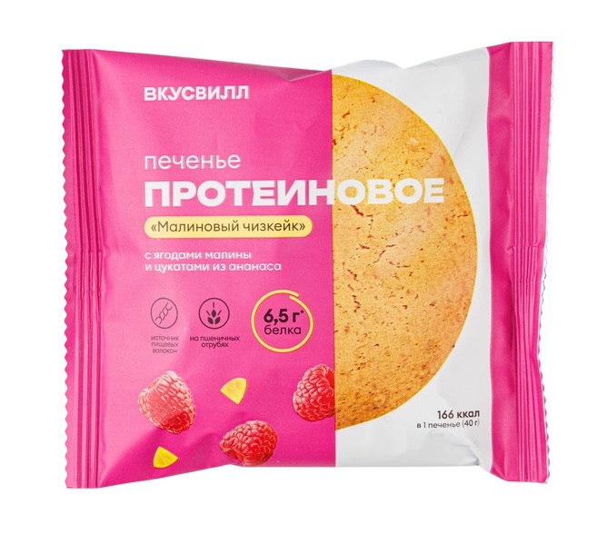 смесь белков (концентрат молочного белка, концентрат сывороточного белка), водорастворимые волокна кукурузы (клетчатка), цукаты ананас (ананас, сахар, рисовая мука), ягоды малины сушеные, масло кокосовое рафинированное дезодорированное, меланж яичный жидкий, вода питьевая, отруби пшеничные, комплексная пищевая добавка (мальтодекстрин, подсластители (изомальт, мальтит), инулин, подсластитель - стевиолгликозид), разрыхлитель - гидрокарбонат натрия (сода пищевая), ароматизатор натуральный - малина, соль пищевая, антиокислитель - аскорбиновая кислота. Продукция производится на предприятии, где используются аллергены: арахис, орехи, соя. Содержит подсластители (сахарозаменители). При чрезмерном употреблении могут оказывать слабительное действие.;