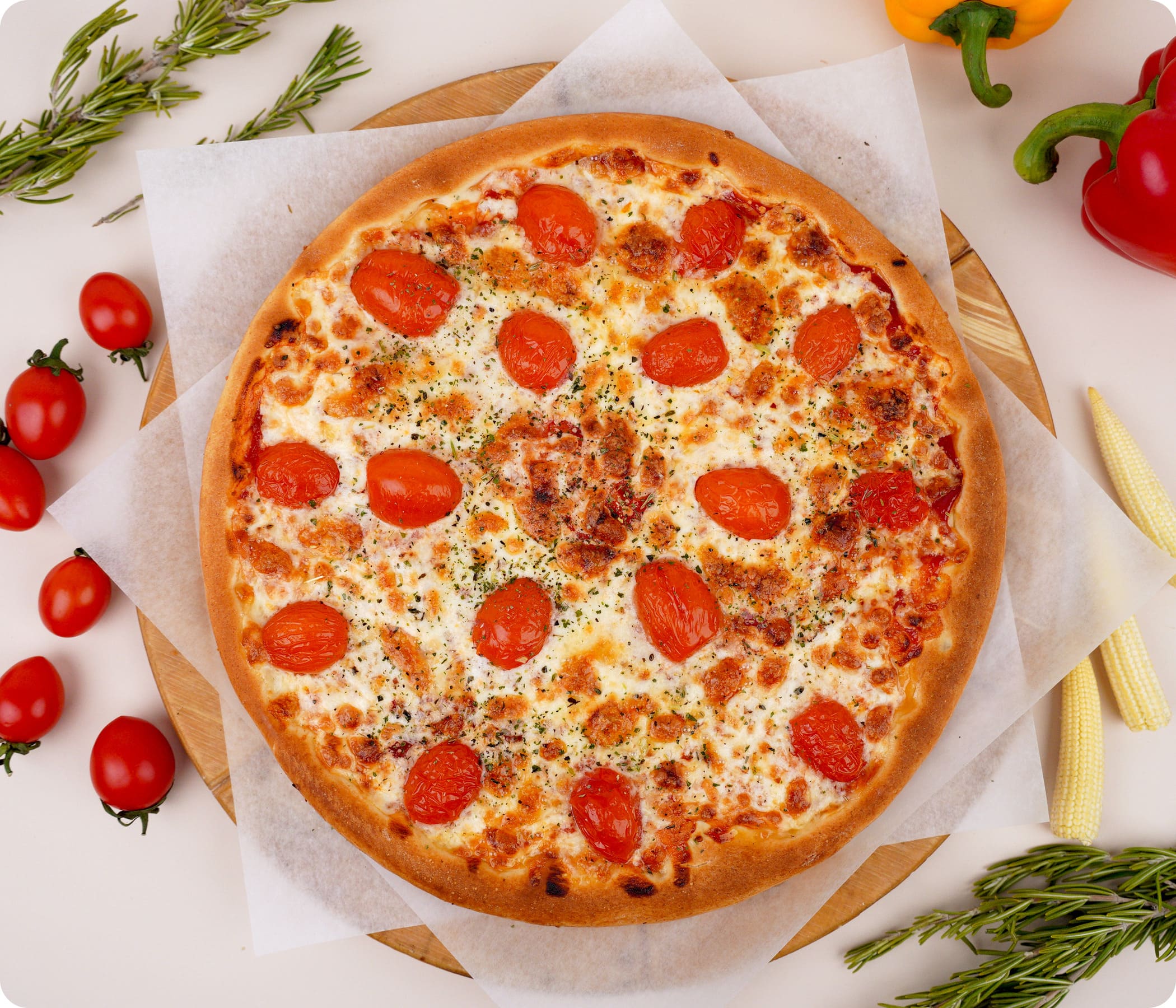 Пицца Маргарита - это классика, которая никогда не устареет. Когда вы открываете коробку с этой пиццей, вас окутывает аромат свежих помидоров и сыра моцарелла. Воплощение простоты и изысканности.
