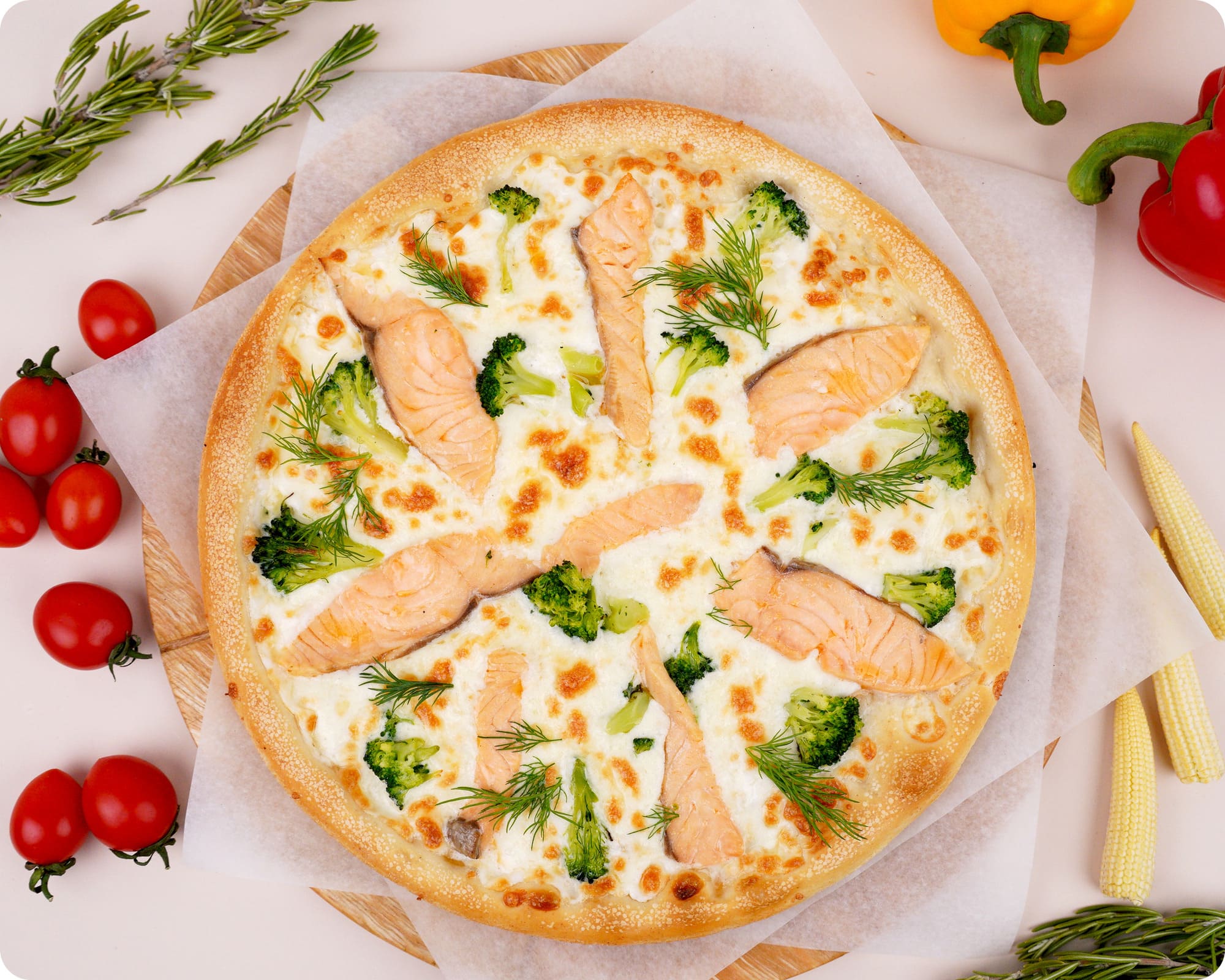 Пицца с лососем, брокколи и сливочным соусом 570г/СПРС