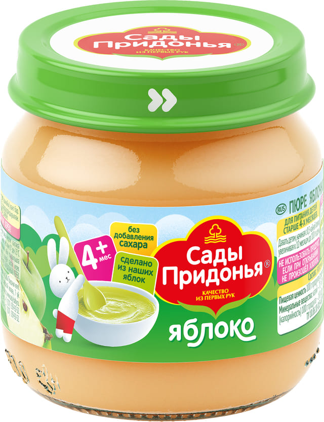 Пюре САДЫ ПРИДОНЬЯ яблоко с 4мес 80г с/б