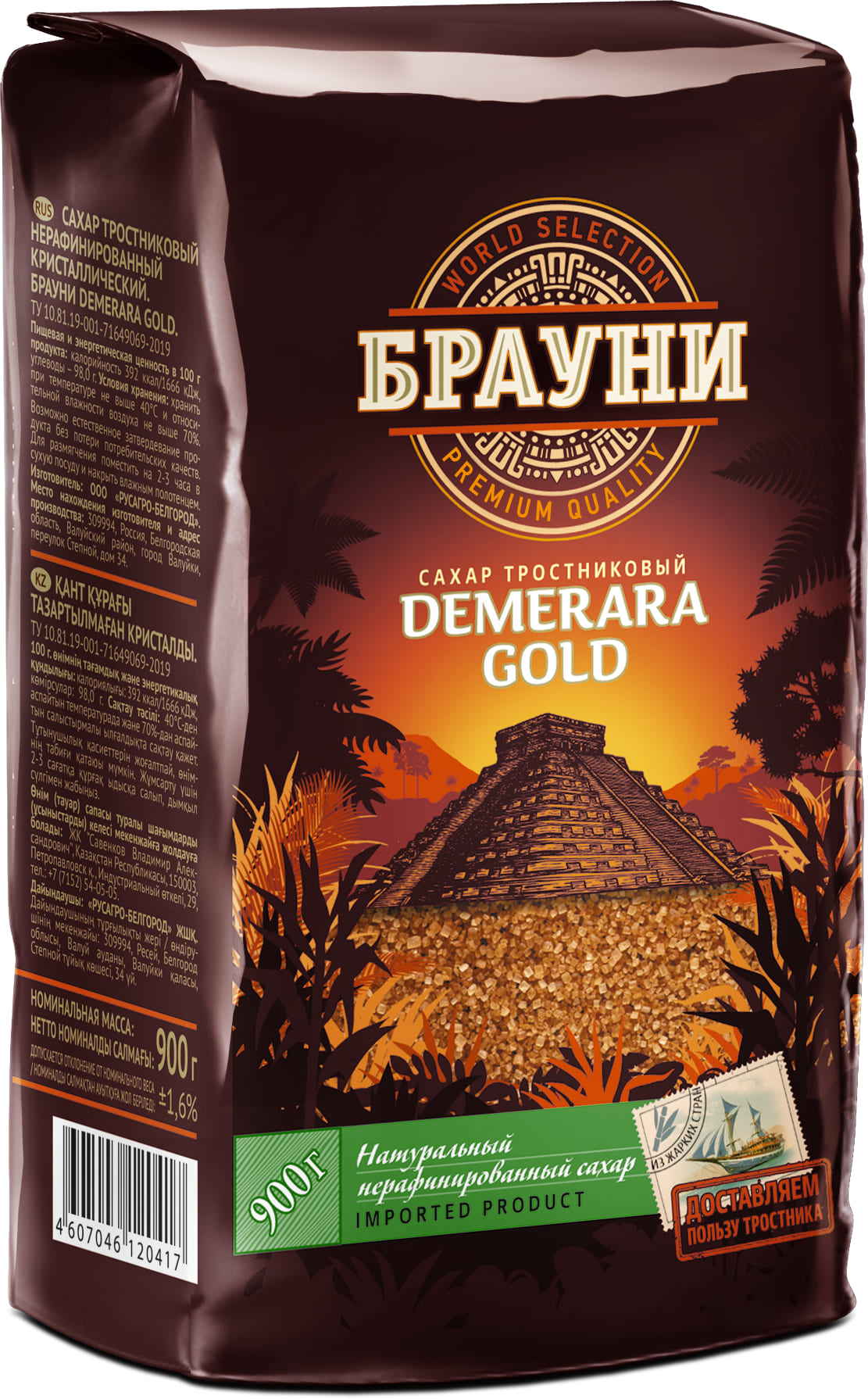 Сахар тростниковый БРАУНИ коричневый 900г