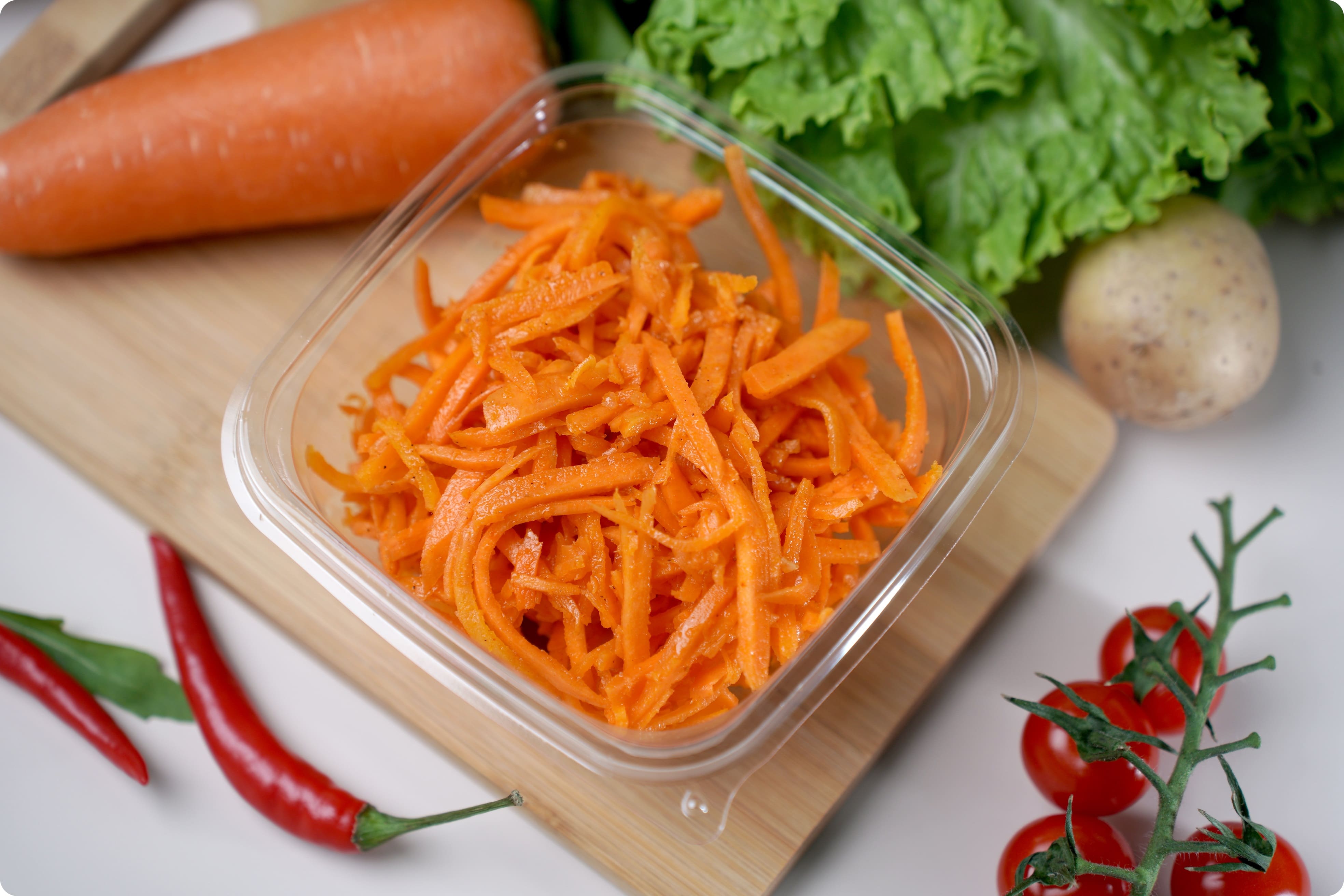 Морковь свежая,масло растительное рафинированное, чеснок свежий, соль пищевая ,сахар песок , перец красный молотый, уксус столовый.