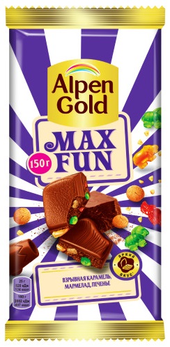 Шоколад ALPEN GOLD Max Fun карамель/мармелад/печенье 140г