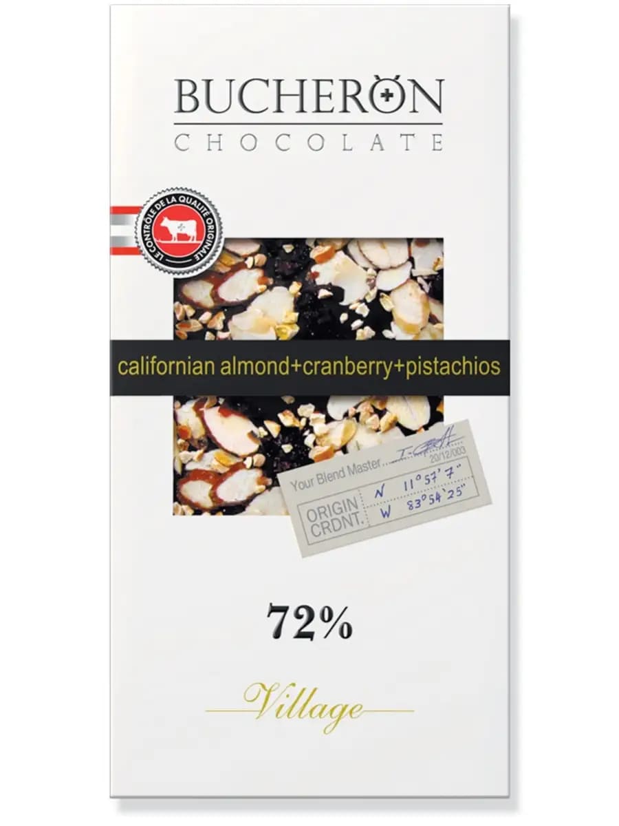 Шоколад BUCHERON горький c миндалём клюквой и фисташкой 85г