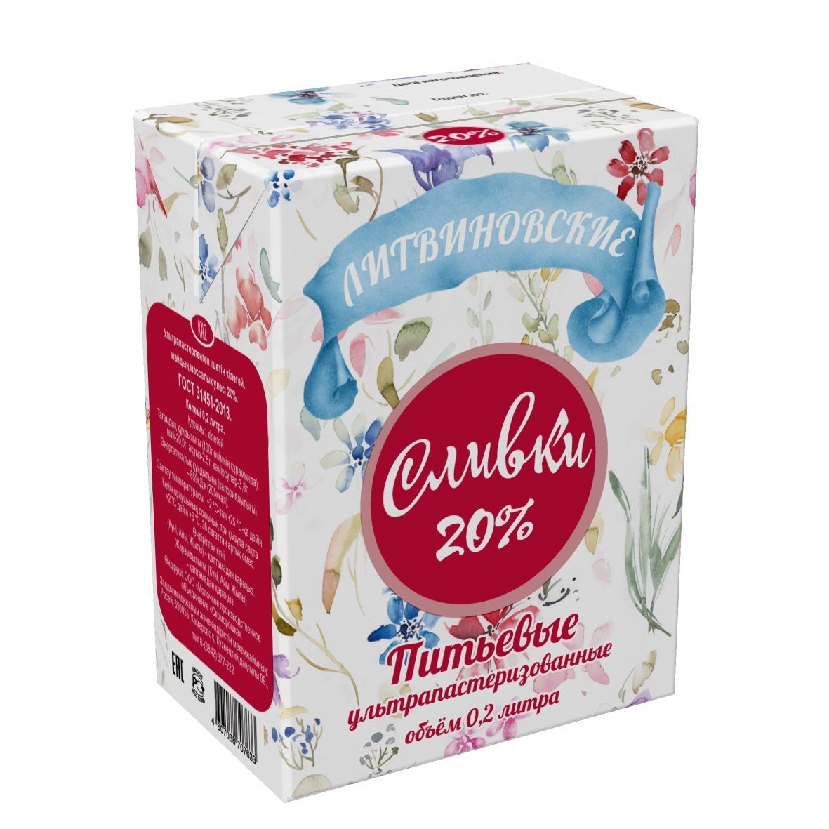 Сливки питьевые ультрапастер Литвиновские 20% 0,2л Slim