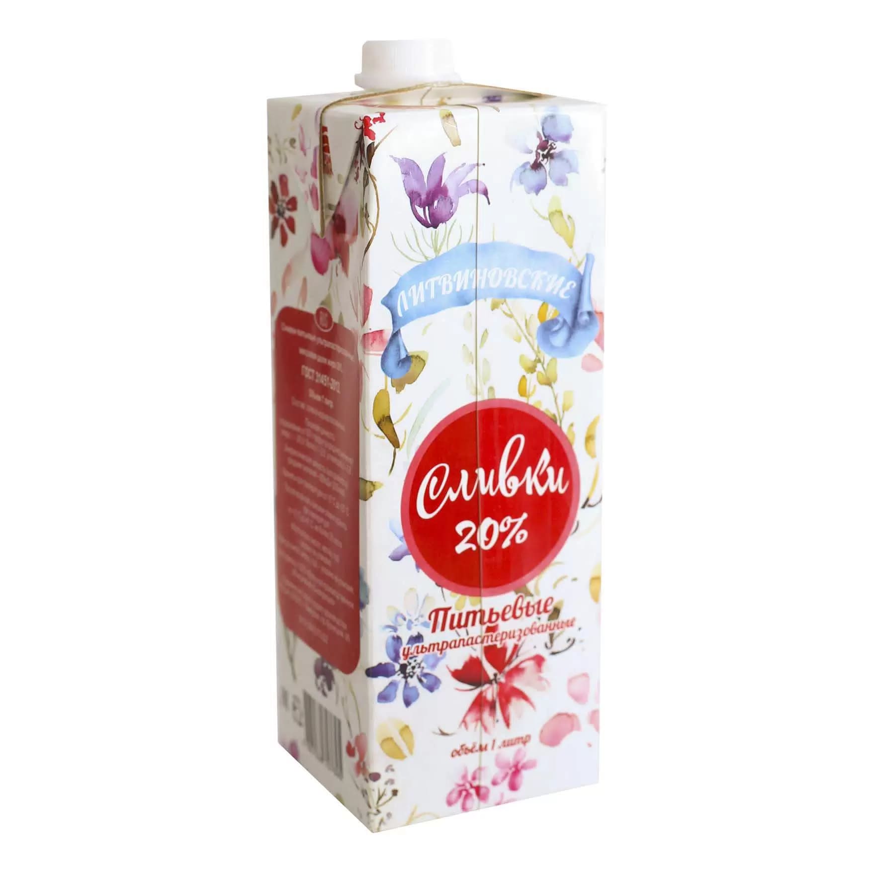 Сливки питьевые ультрапастер Литвиновские 20% 1л Square c крышкой StreamCap