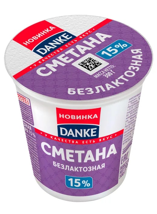 Сметана 300г мдж 15% безлактозная ТМ "Danke"