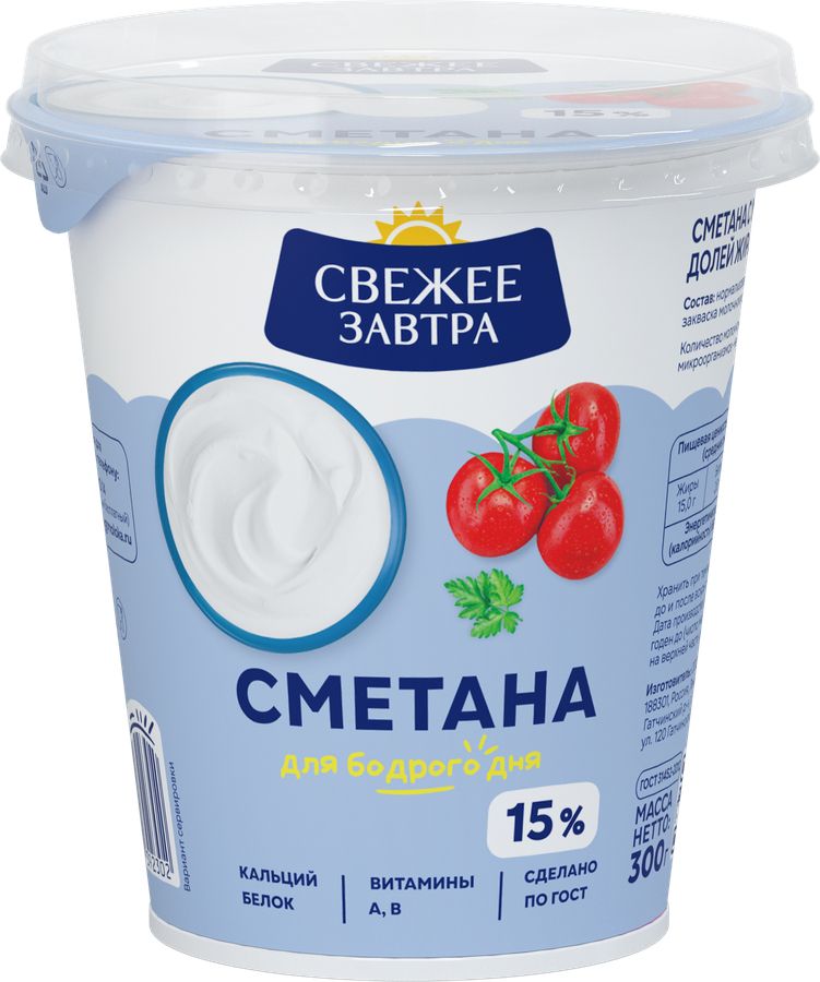 Сметана Свежее завтра 15% 300г