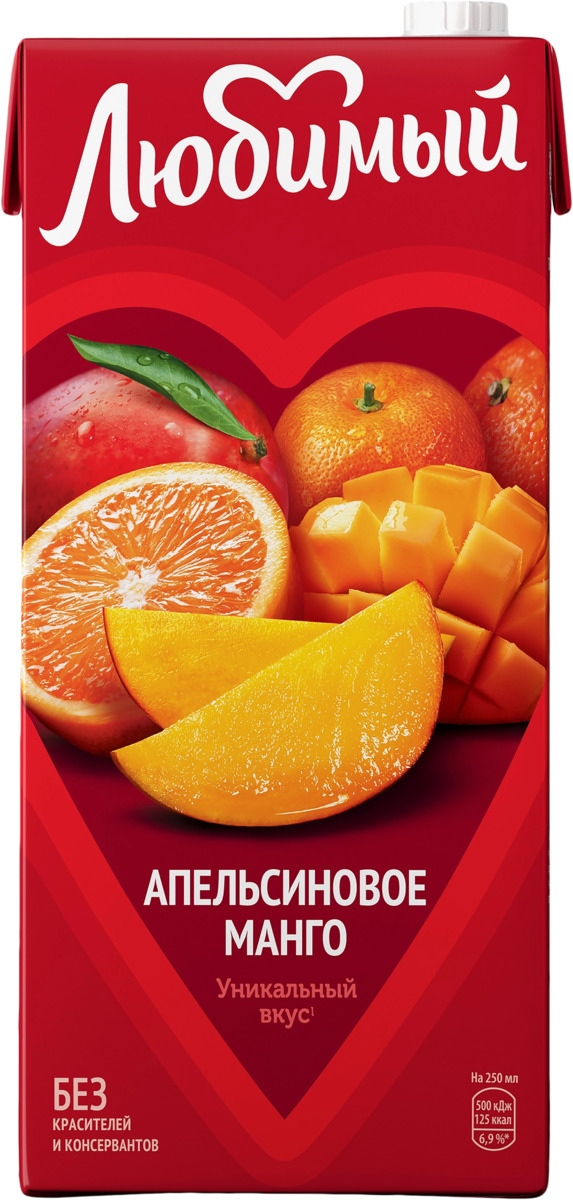 Напиток сокосодержащий ЛЮБИМЫЙ Апельсиновое манго. Бархатистый манго и сочный апельсин идеальный союз для истинных ценителей вкуса. Этот гармоничный микс пробуждает желание делиться им с теми, кто по-настоящему дорог. Расскажите о нем тому, кто занимает особое место в вашем сердце.