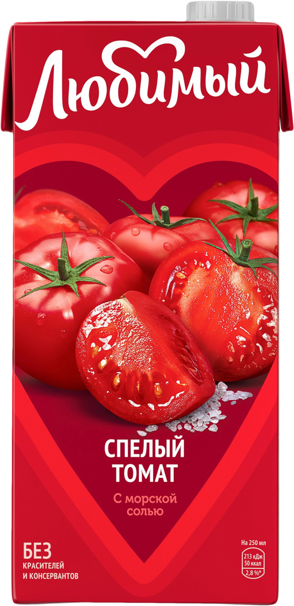 Нектар ЛЮБИМЫЙ Томатный. Выпейте томатный сок и наполните себя энергией, чтобы потом делиться ею с близкими. Отличный план на каждый день. Чем сок отличается от нектара? Разница в содержании фруктовой жидкости. В соке её 80%, а в нектаре — от 25% до 50%.