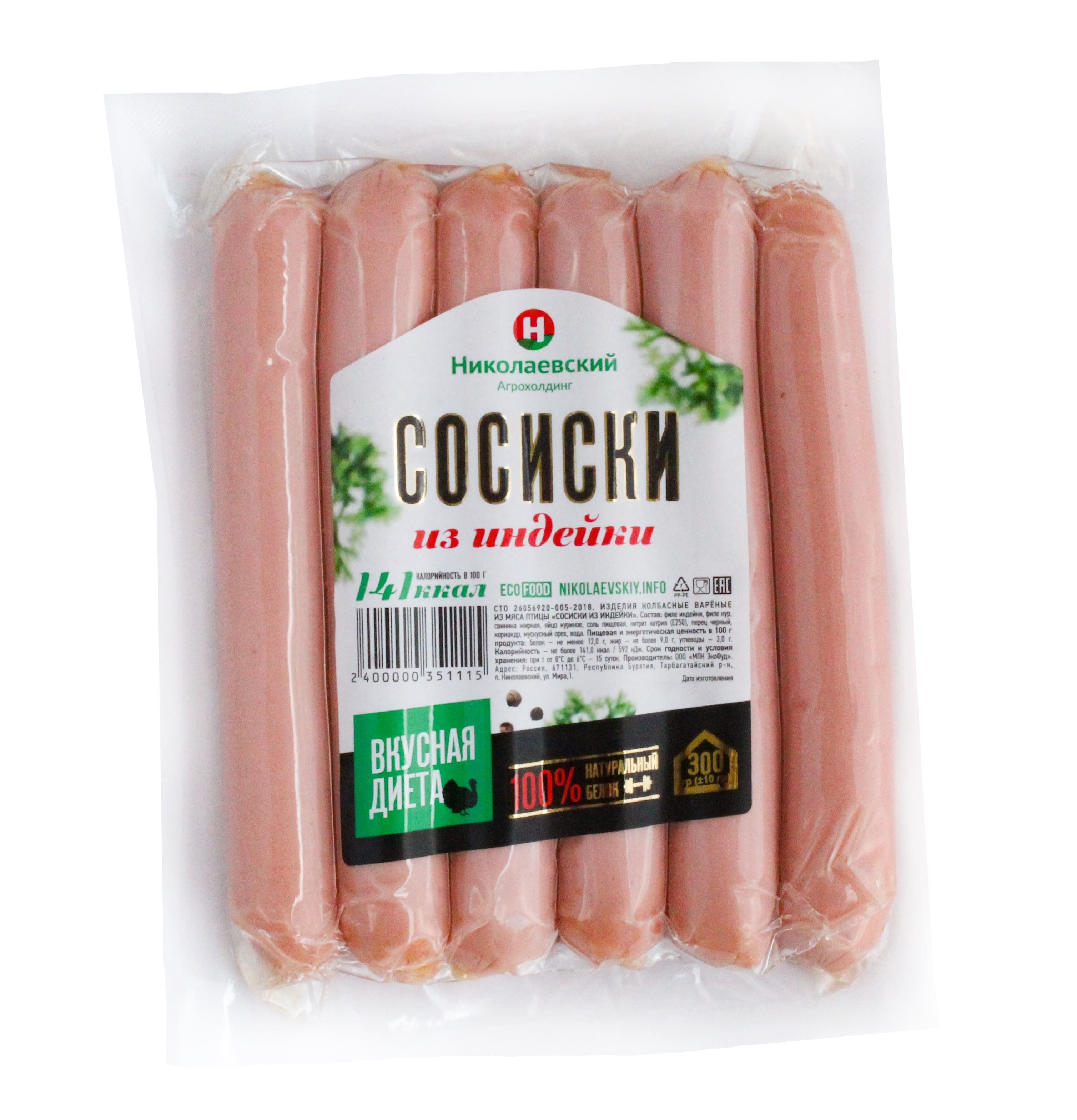 Филе индейки, филе кур., свинина жирная, яйцо кур, соль пищевая, нитрит натрия, перец черный, кориандр, мускатный орех, вода.;