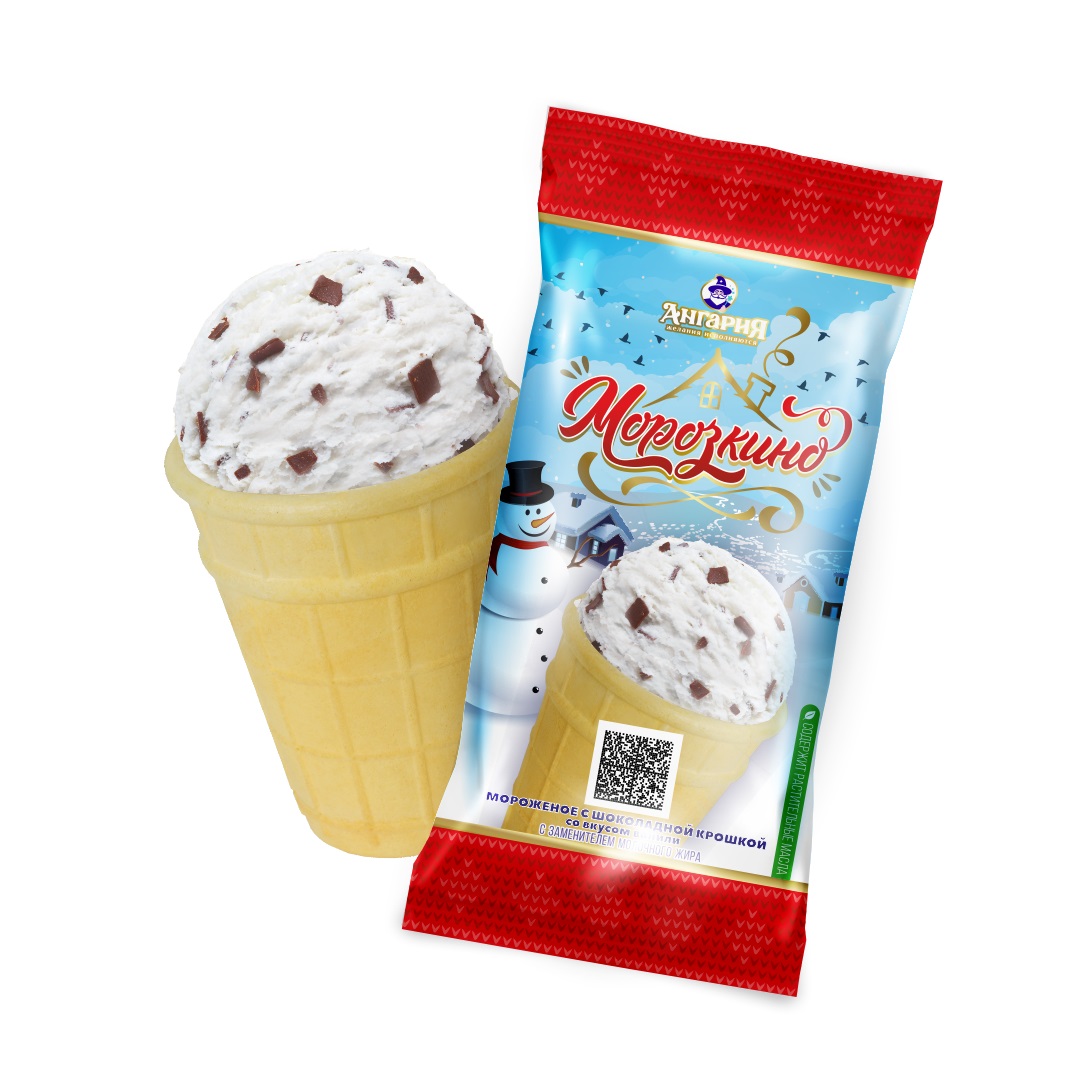 Заменитель молочного жира (рафинированные дезодорированные масла:пальмовое, подсолнечное, пальмоядровое), сахар-песок, молоко сухое обезжиренное, сыворотка молочная сухая, сухой глюкозный сироп, вода питьевая, эмульгатор (моно-и диглицериды жирных кислот), стабилизатор (камедь рожкового дерева, гуаровая камедь), ароматизатор пищевой "ванилин"; шоколоадная крошка (сахар-песок, растительный жир, какао-порошок, глюкозный сироп, эмульгатор (соевый лецитин), ароматизатор пищевой "ванилин"); вафельный стаканчик (мука пшеничная, сахар-песок, пшеничные волокна, крахмал картофельный, яичный порошок. масло подсолнечное, разрыхлитель-сода пищевая, соль, вода питьевая);