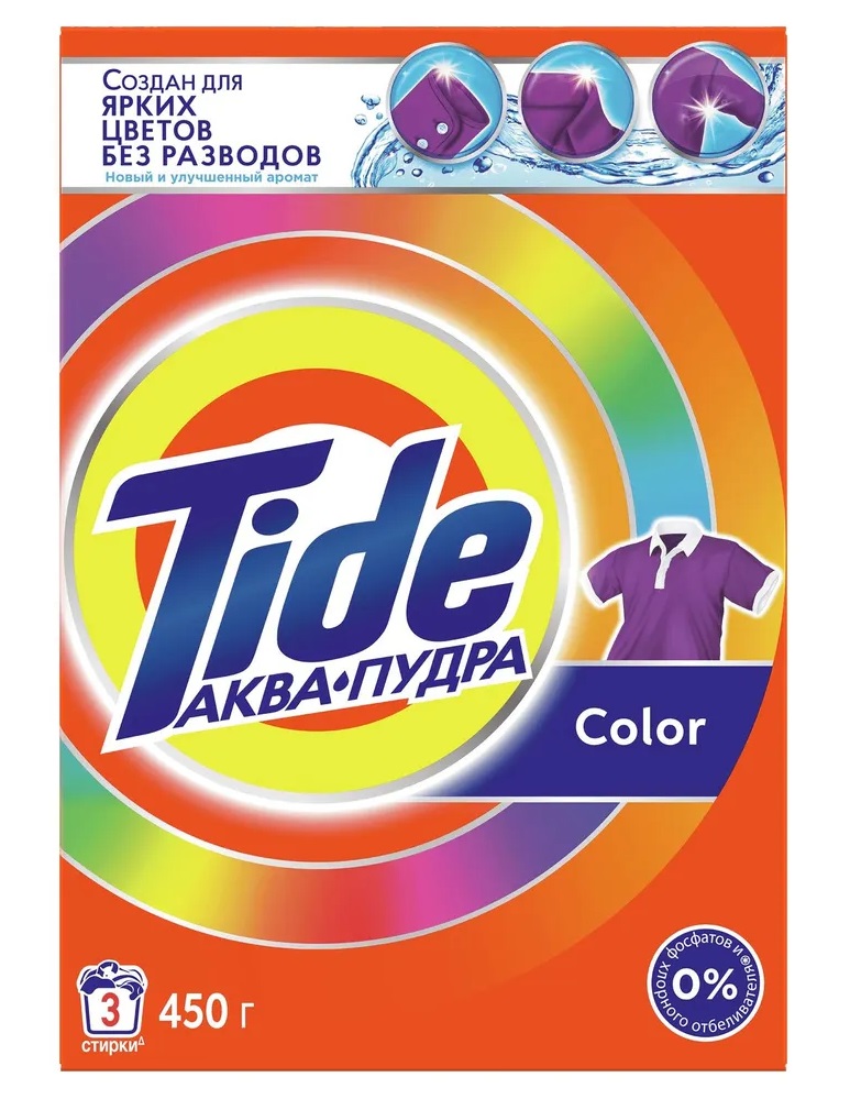 Стиральный порошок автомат Tide Color для стиральной машины предназначен для стирки цветного и белого белья. Tide Color удаляет трудновыводимые пятна и возвращает вещам кристальную чистоту с первой стирки, включая сложные зоны, такие как воротнички и манжеты.
