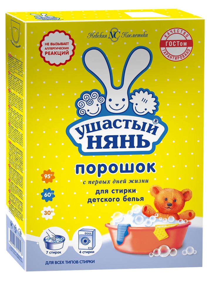Стиральный порошок УШАСТЫЙ НЯНЬ подходит для белья и одежды детей любого возраста, в том числе новорожденных. Эффективно справляется с пятнами от молока, фруктовых и овощных пюре, соков, каш, яиц, а также продуктов жизнедеятельности малышей.