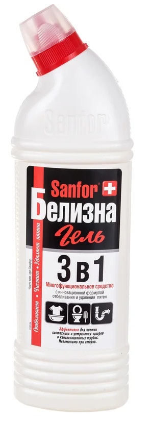 Белизна гель 3 в 1 от Sanfor 700г - универсальная жидкость для профессионального (отели, офисы, торговые центры, детские и медицинские учреждения) и домашнего использования (сантехника, ванна, санузел, туалет, душевые кабины, кухня, стоки, сливные отверстия, мытье плитки).
