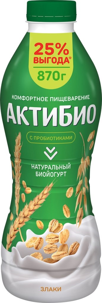 АктиБио Злаки нежный и вкусный питьевой биойогурт. Благодаря бифидобактериям способствует комфортному пищеварению. Умеренно сладкий с насыщенным сливочным вкусом, этот кисломолочный напиток подходит для завтрака и легкого перекуса в течение дня. Большой формат подходит для всей семьи.