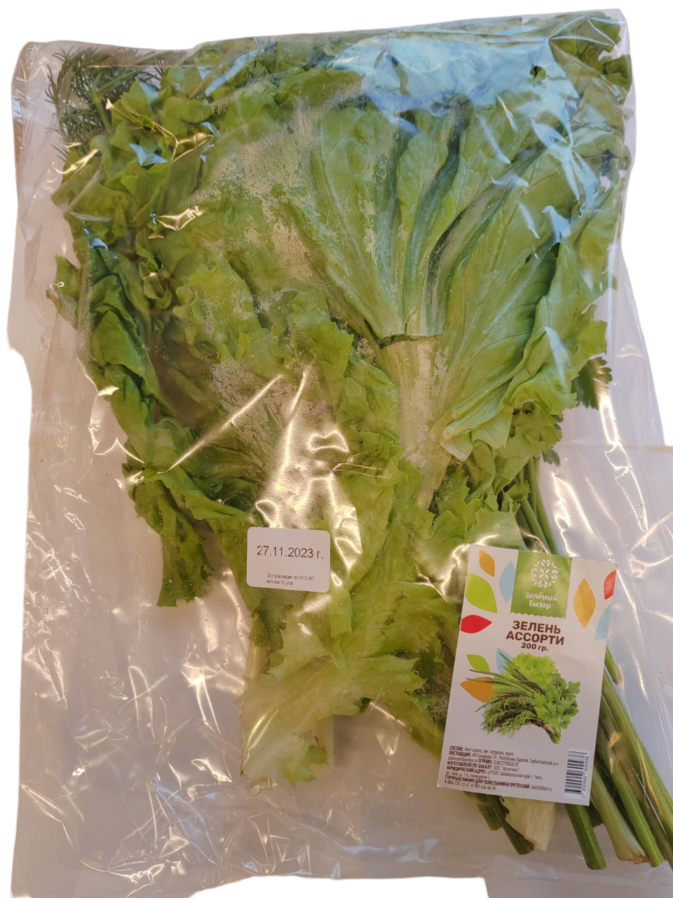 Лист салата, зеленый лук, петрушка, укроп.;