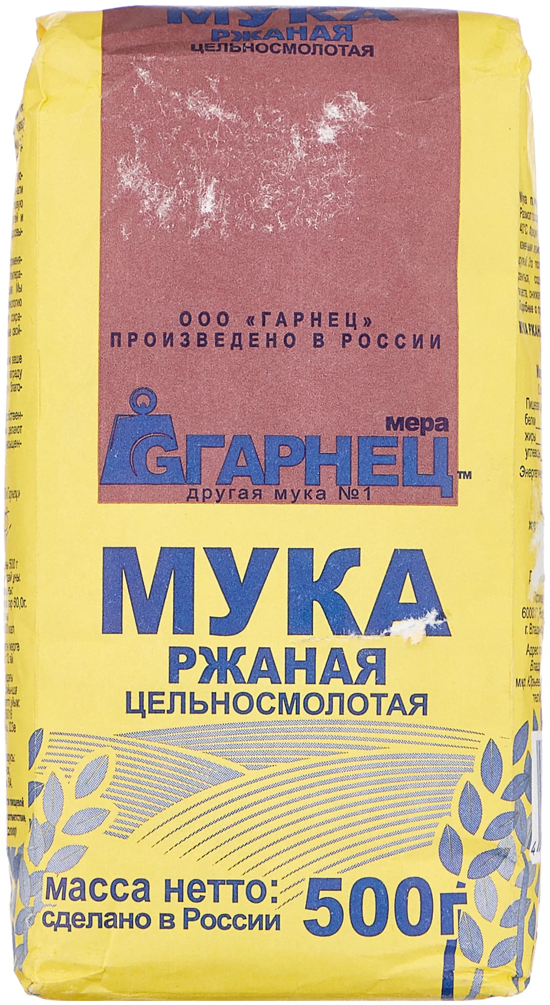 Мука ГАРНЕЦ ржаная цельносмолотая 500г