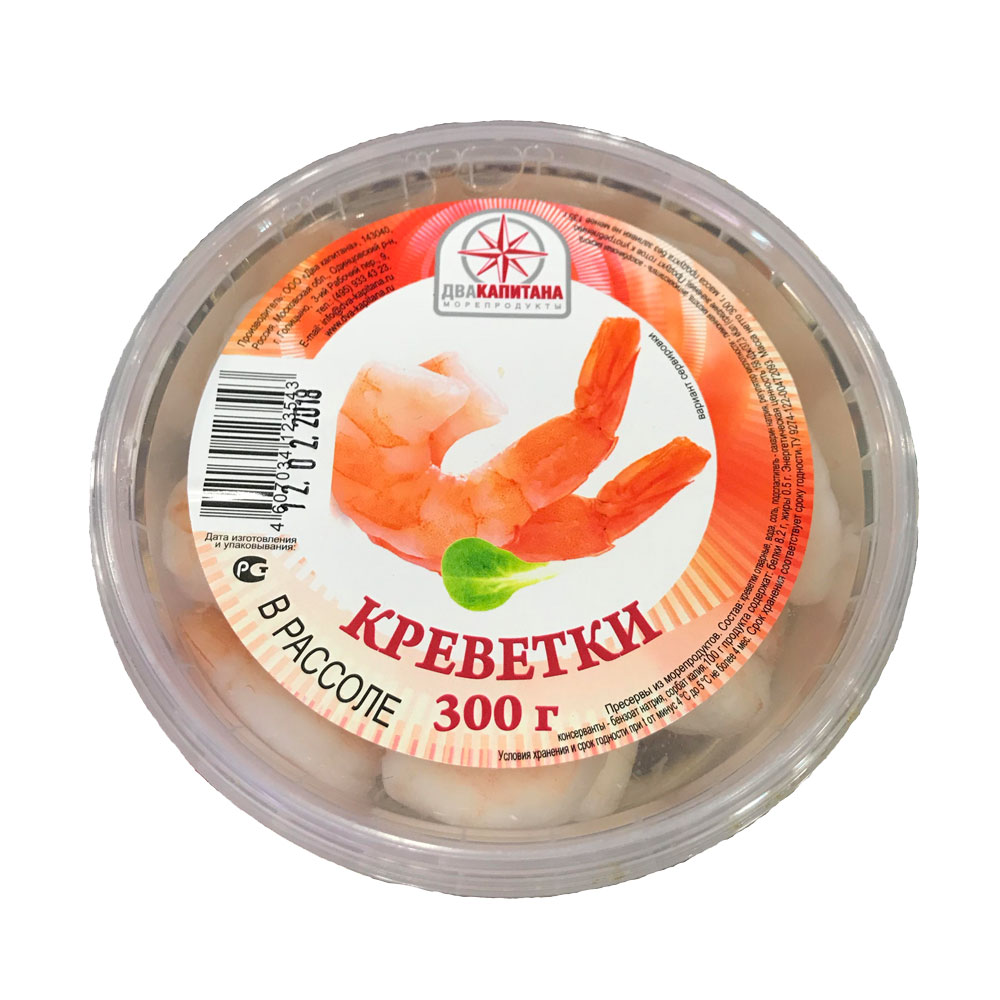 Креветки ДВА КАПИТАНА в рассоле 300г п/б