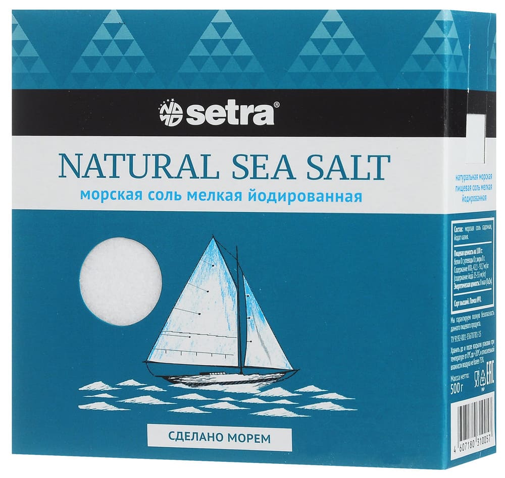 Соль морская SETRA мелкая йодированная 500г